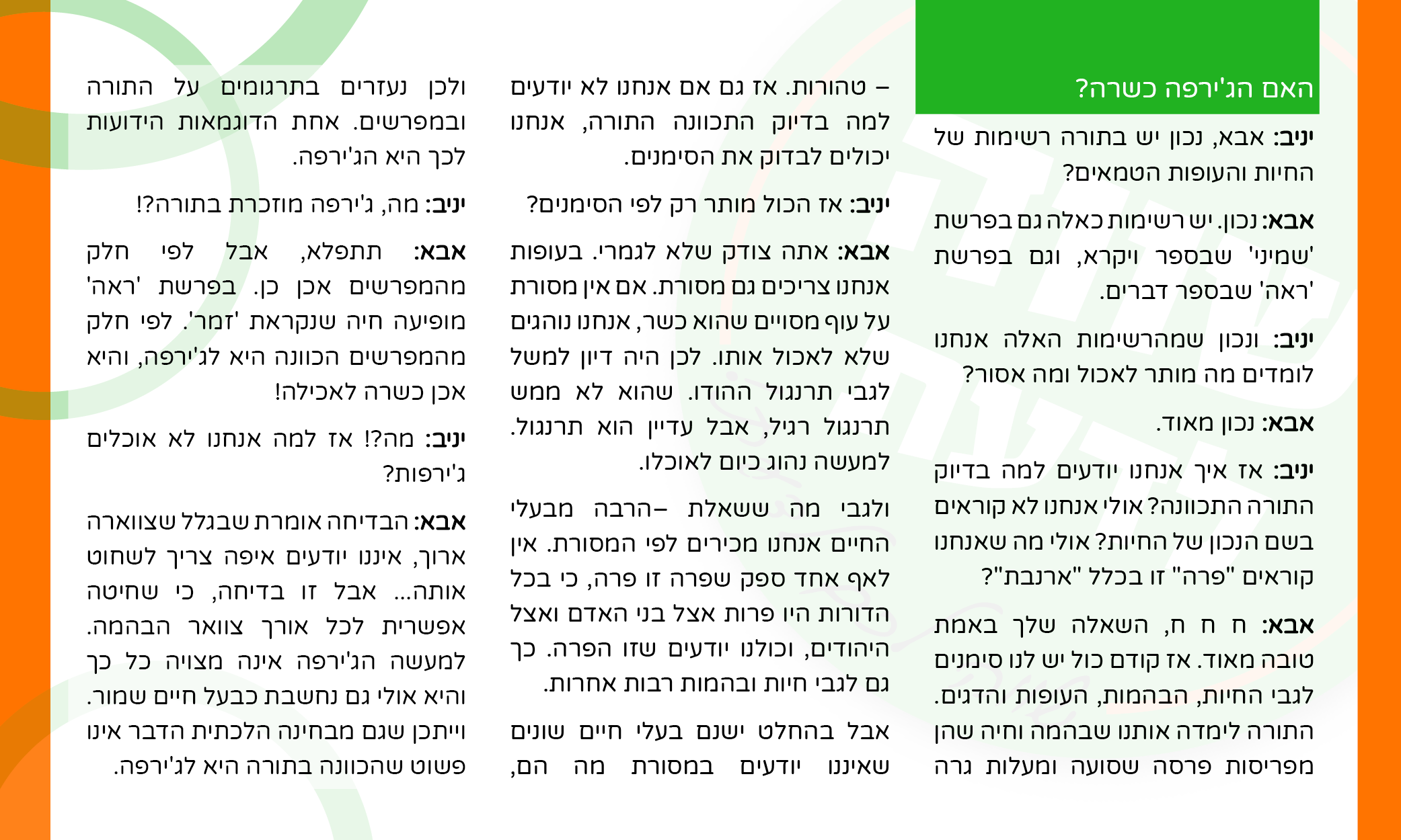 פינות 'שווה לדעת' ו'טבע בפרשה' ובהן דברים להרחבת הידע סביב הפרשה והנושאים שבה.