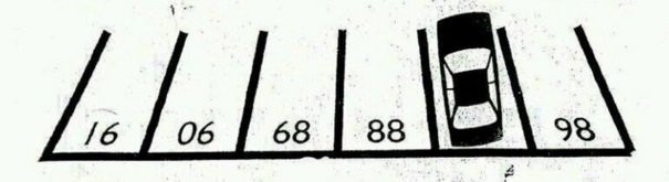 משפחת חדד נסעה לבית של הדודים בגבעת שמואל להדלקת נרות. הביטו בתמונה - באיזה מספר חנייה הם חנו?(שימו לב, זה דורש קצת חשיבה מחוץ לקופסה! או מחוץ לחנייה…)