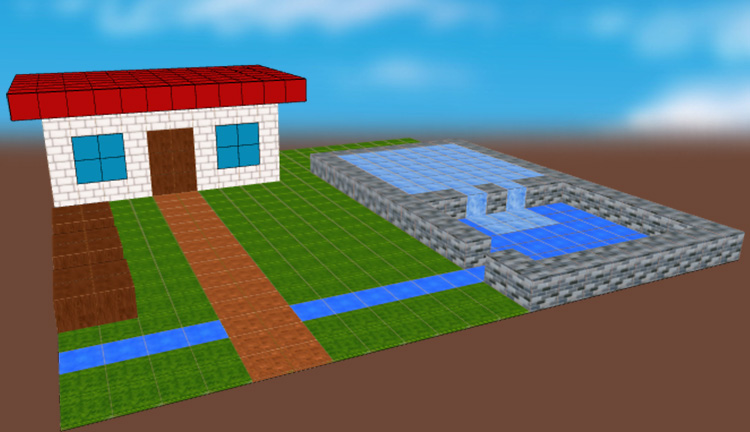 במשחק זה תוכלו ליצור מבנים, חצרות, משטחים ועוד הרבה דברים בתלת מימד, לצבוע אותם ולהוסיף מרקמים של לבנים, דשא, מים ועוד!