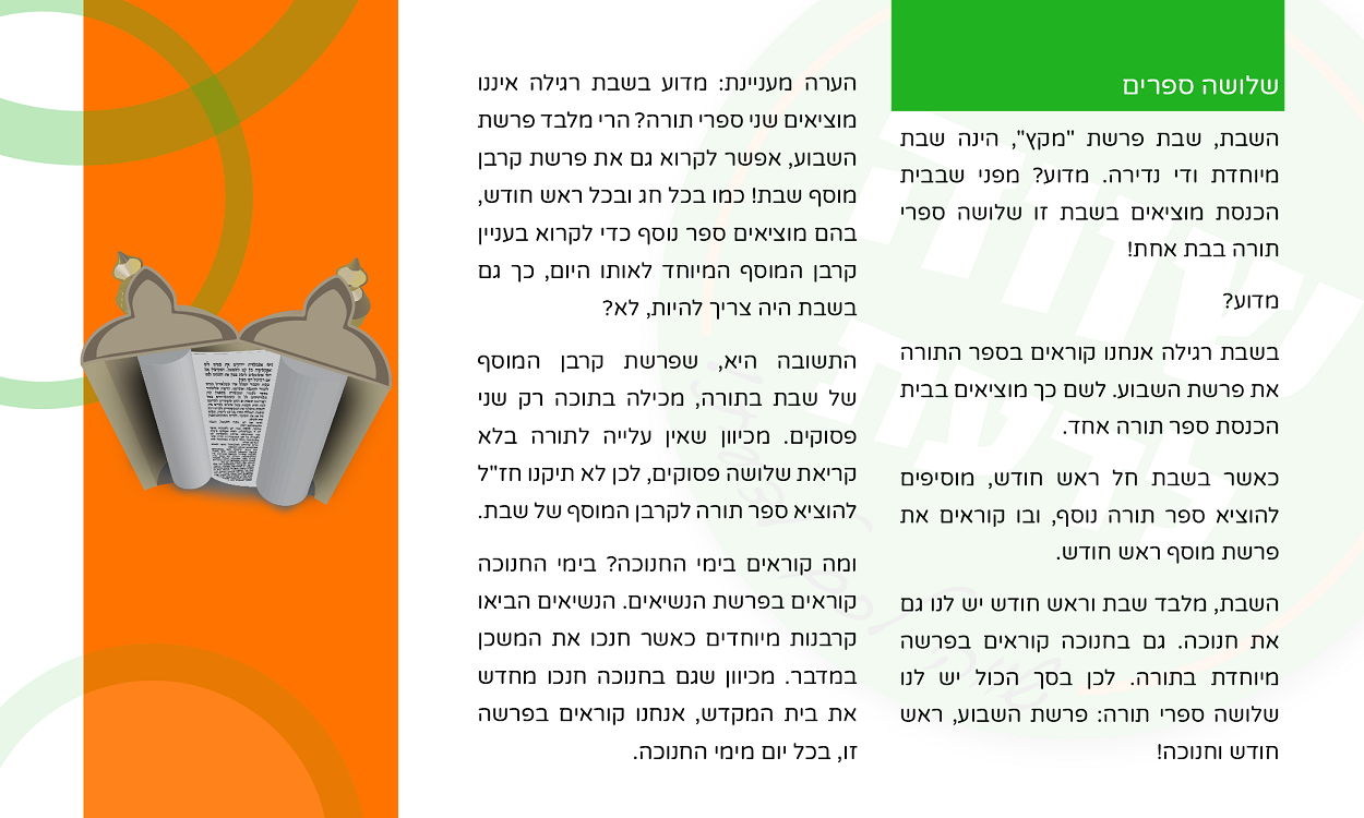 פינות 'שווה לדעת' ו'טבע בפרשה' ובהן דברים להרחבת הידע סביב הפרשה והנושאים שבה.
